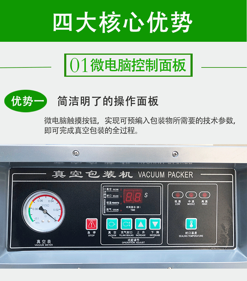 单室内抽真空包装机的抽气时间和真空度设定需要综合考虑多个因素,以下是一些基本的设定方法和要点: