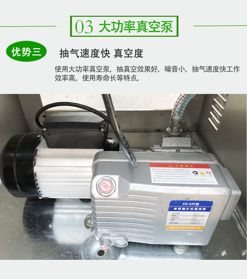 - 真空泵性能:真空泵的抽气速度是影响抽气时间的重要因素。抽气速度快的真空泵能够在较短时间内抽出相同体积的空气。如果设备配备的是高性能、大抽气速度的真空泵,抽气时间可以适当缩短;反之,则需要延长抽气时间。例如,一台抽气速度为 40m³/h 的真空泵,对于一般规格的包装袋,抽气时间可能在 20 - 30 秒;而抽气速度为 20m³/h 的真空泵,抽气时间可能需要 30 - 40 秒。