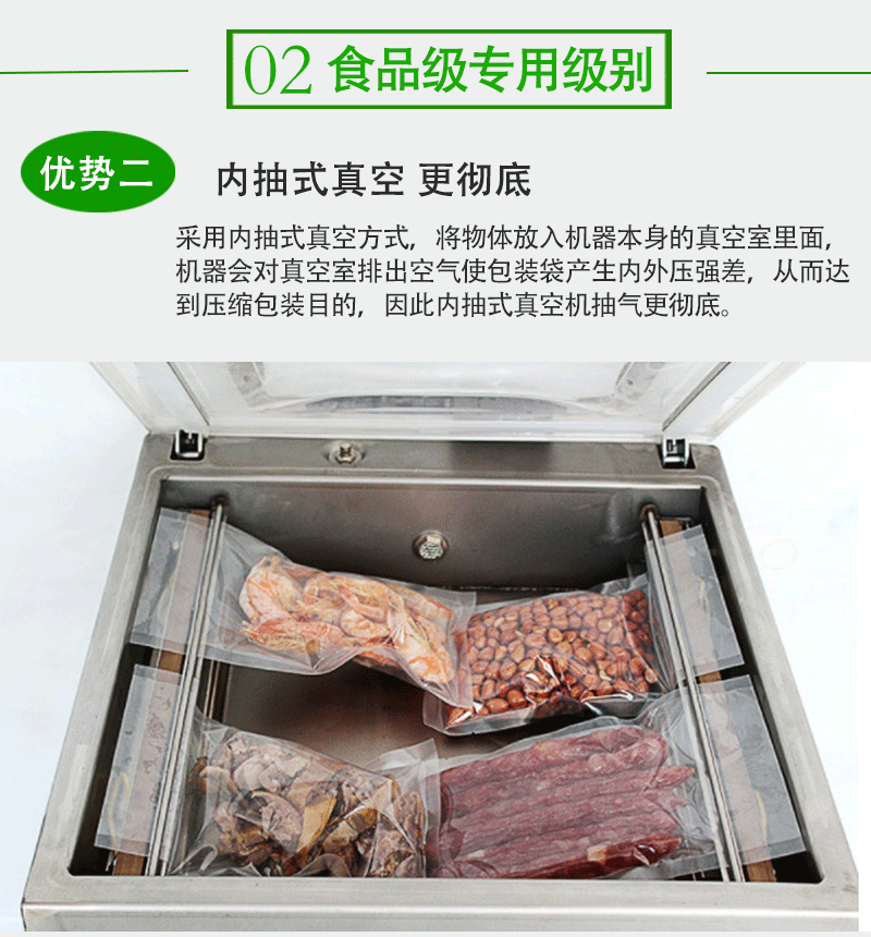 - 产品需求:不同产品对真空度的要求差异很大。一些对氧气敏感、易氧化的食品,如肉类、海鲜、茶叶等,通常需要较高的真空度,一般在 -0.08MPa 至 -0.1MPa 之间,以延长保质期;而对于一些不怕氧化但需要防潮、防虫的产品,如干货、谷物等,真空度要求相对较低,可能在 -0.06MPa 至 -0.08MPa 之间即可。对于电子元器件等产品,为了防止静电和氧化,也需要较高的真空度,通常在 -0.09MPa 至 -0.1MPa 左右。