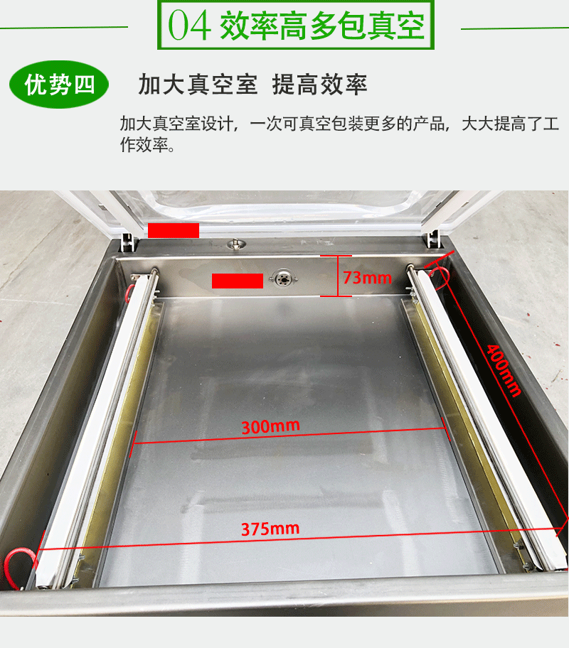 - 包装袋尺寸:包装袋的大小和容积决定了需要抽出的空气量。较大的包装袋需要更长的抽气时间来达到相同的真空度。例如,包装尺寸为 20cm×30cm 的包装袋,抽气时间可能在 20 - 30 秒;而对于 50cm×80cm 的大包装袋,抽气时间可能要延长至 40 - 60 秒。