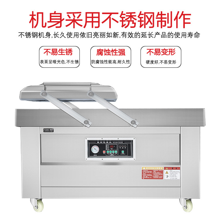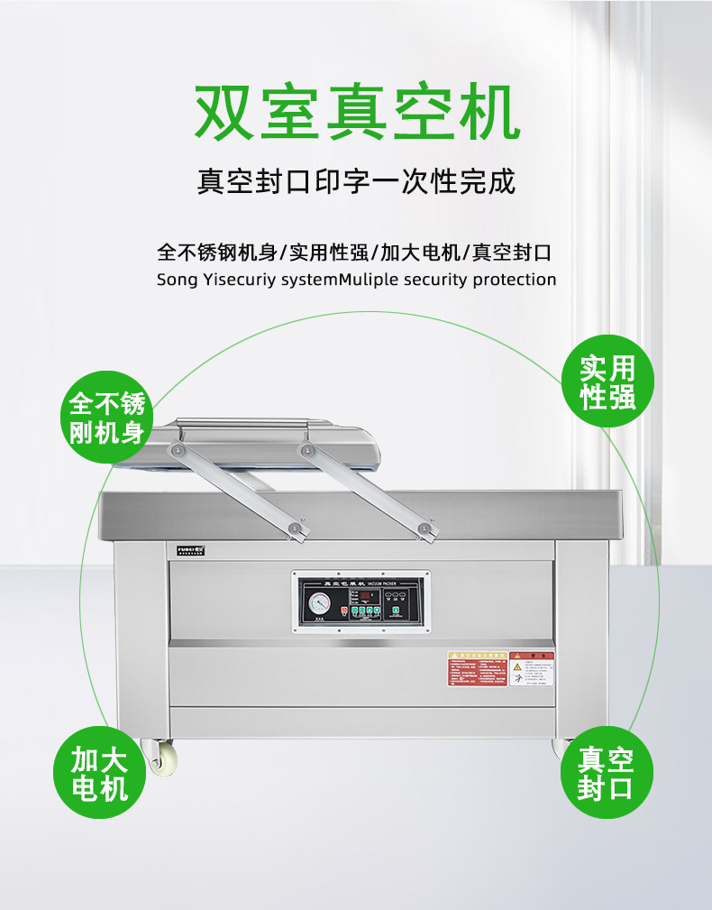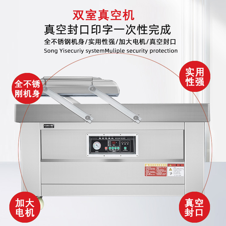 - 品牌和质量:选择知名品牌和质量可靠的双室平板真空包装机,可保证设备的稳定性、耐用性和售后服务质量,减少设备故障和维修时间,提高生产效率