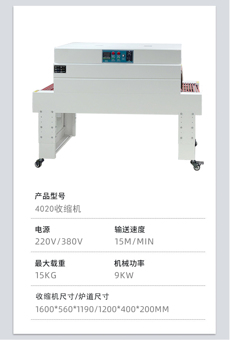 • 收缩炉采用 “不锈钢保温炉体 + 热风循环设计”,热量流失少,比传统开放式加热节能 20%-30%;