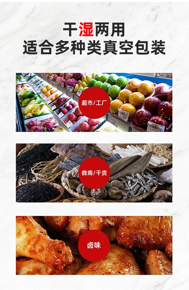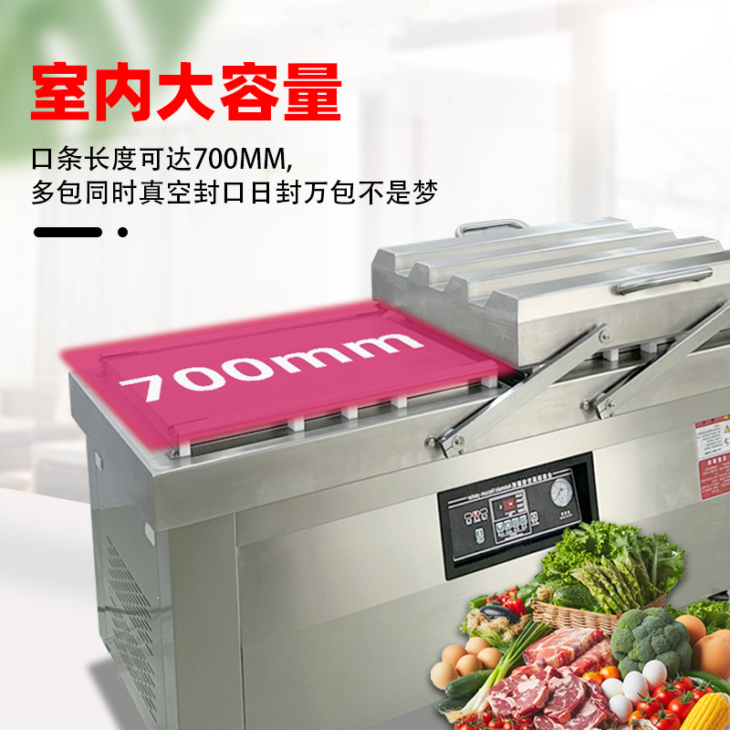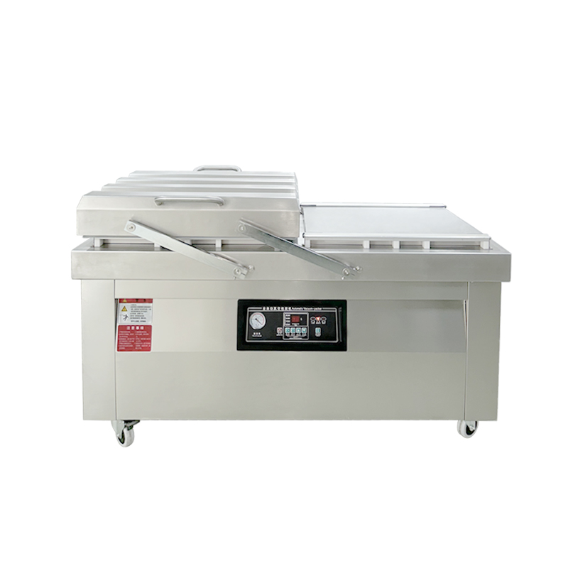 双室真空包装机通过 “双真空室轮换作业” 实现抽真空与装袋无缝衔接,核心是利用两个独立真空室的 “时间差并行操作”,让设备在同一周期内同时完成 “抽真空密封” 和 “人工 / 自动装袋”,彻底消除单室机型 “抽真空时无法装袋” 的等待间隙,大幅提升作业效率。其具体运作逻辑和优势可拆解为以下 3 点: