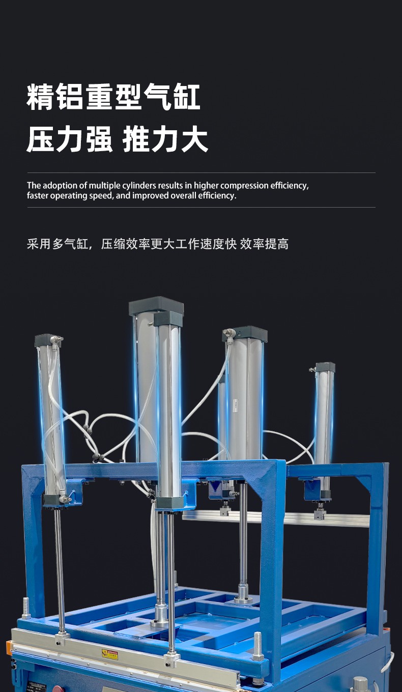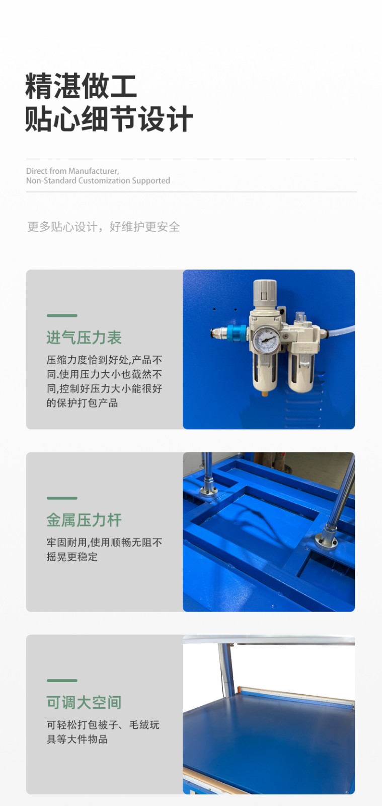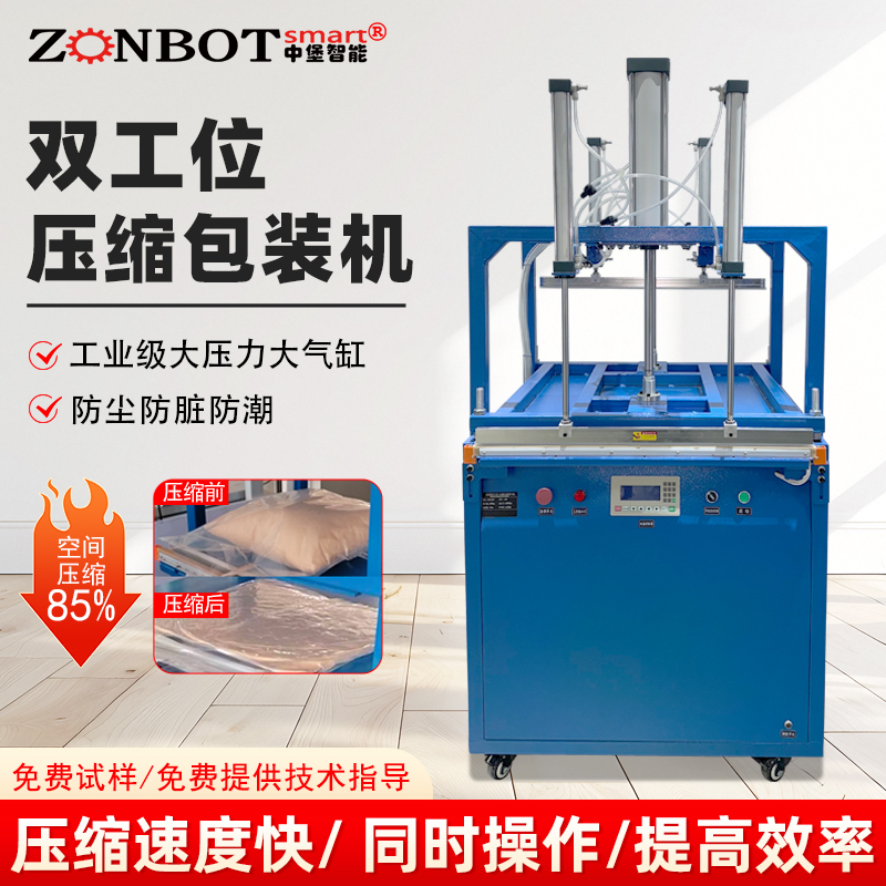 双工位压缩封口机:两个工位可同时作业,一边封口时另一个可放件 / 取件,适合中小批量、多规格产品(如多口味食品、电子元件袋),效率比单工位高 50%-80%。