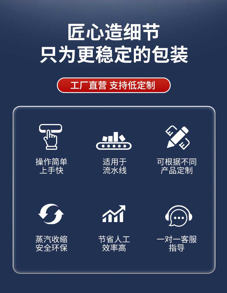 - 适用性强:可用于 PVC、POF、PP 等多种常见的热收缩膜,能适应盒子、瓶子等规则形状以及其他不规则形状产品的包装。